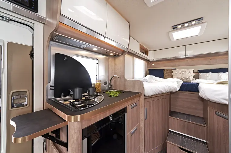 Some models even feature double floors with extra storage and improved insulation — a solution borrowed from higher-end A-class motorhomes.